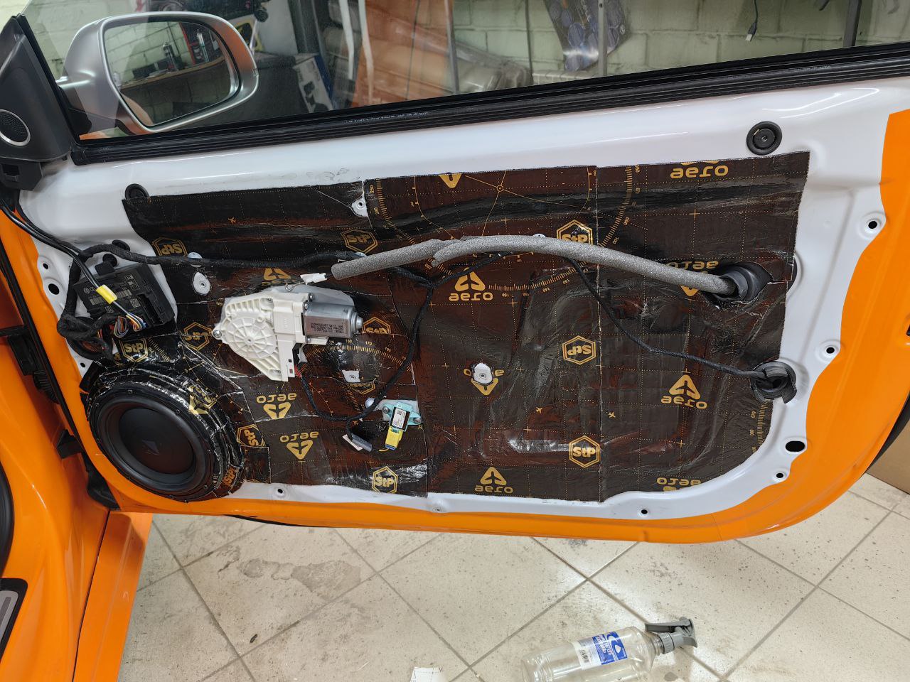 Первый - это вибро- и шумоизоляция дверей. После того, как специалист проложит изоляционный материал, звук в салон будет проникать гораздо меньше. По словам специалистов, качественная шумоизоляция снижает шум в салоне на 30-35%. Соответственно, звучание акустической системы также улучшится - ведь посторонние звуки не будут мешать слушать музыку.